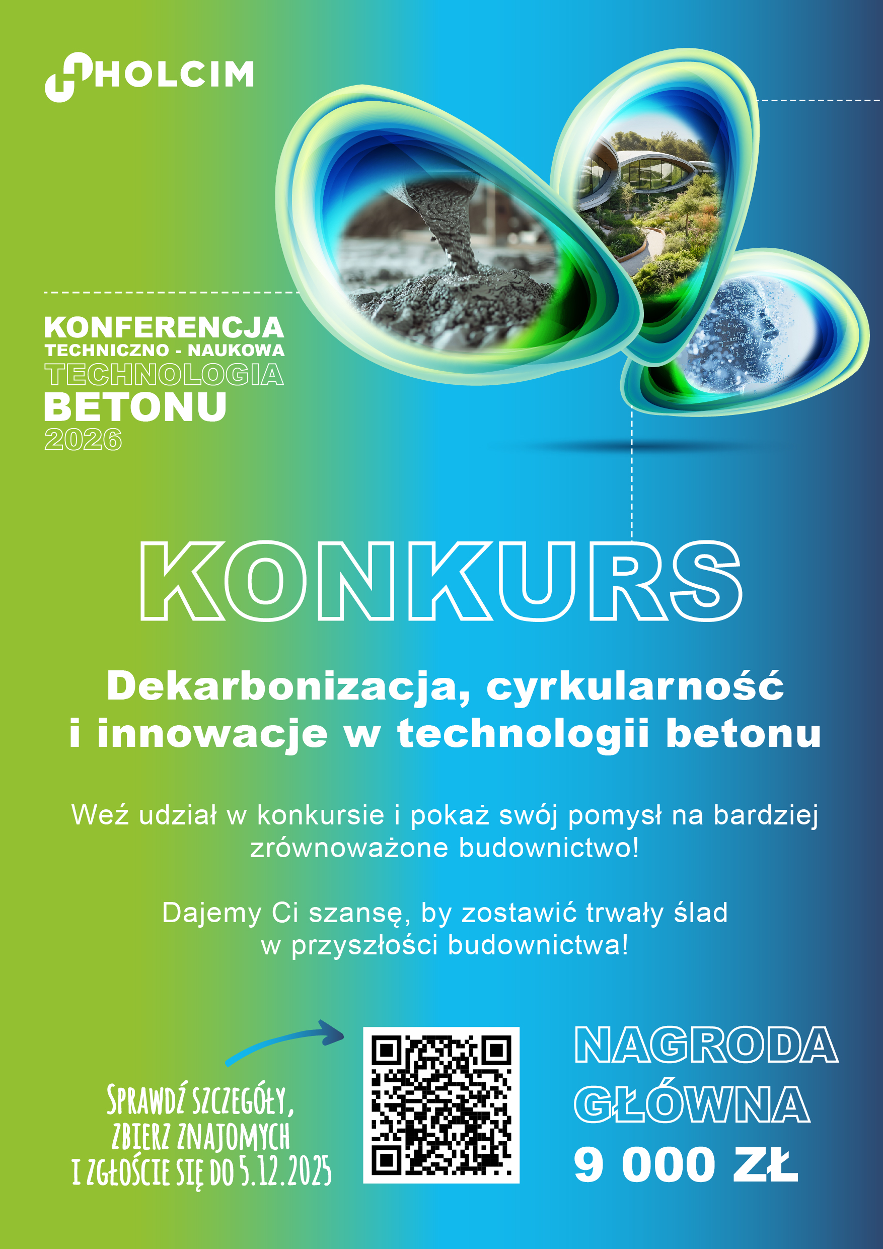 Firma Holcim zaprasza wszystkich studentów do udziału w konkursie „Dekarbonizacja, cyrkularność i innowacje w technologii betonu" . |