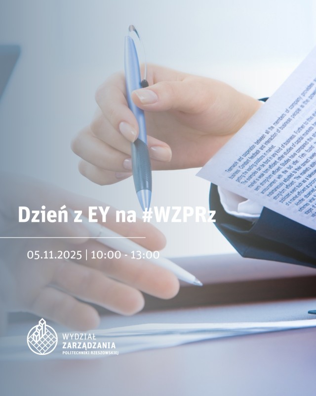 Zapraszamy wszystkich studentów Wydziału Zarządzania Politechnika Rzeszowska im. Ignacego Łukasiewicza na spotkanie z przedstawicielami EY! 5 listopada w godzinach 10:00–13:00 w holu budynku #WZPRz będzie czekać na Was stoisko edukacyjno-informacyjne poświęcone możliwościom kariery, pracy i rozwoju zawodowego. |