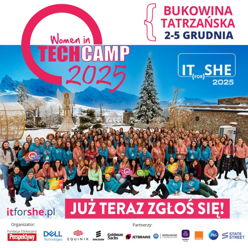 Women in Tech Camp odbędzie się w dniach 2-5 grudnia 2025 w Bukownie Tatrzańskiej.