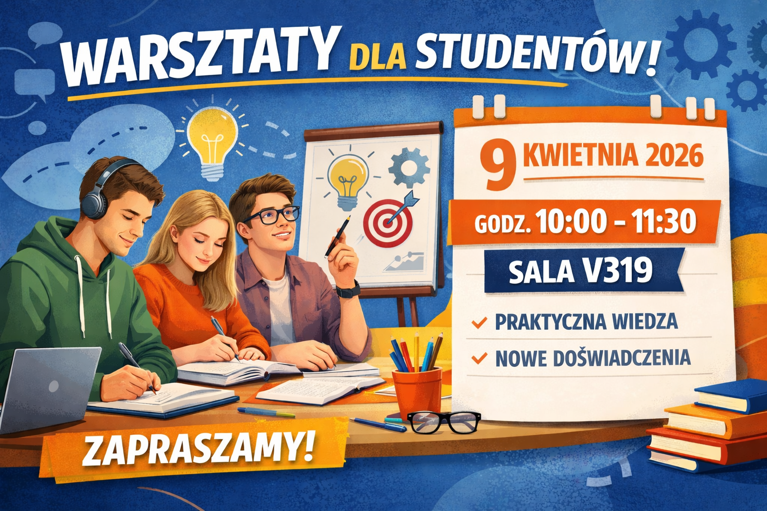 Zapraszamy serdecznie na warsztat 9.04.2026 od 10:00 do 11:30 w sali V319. |